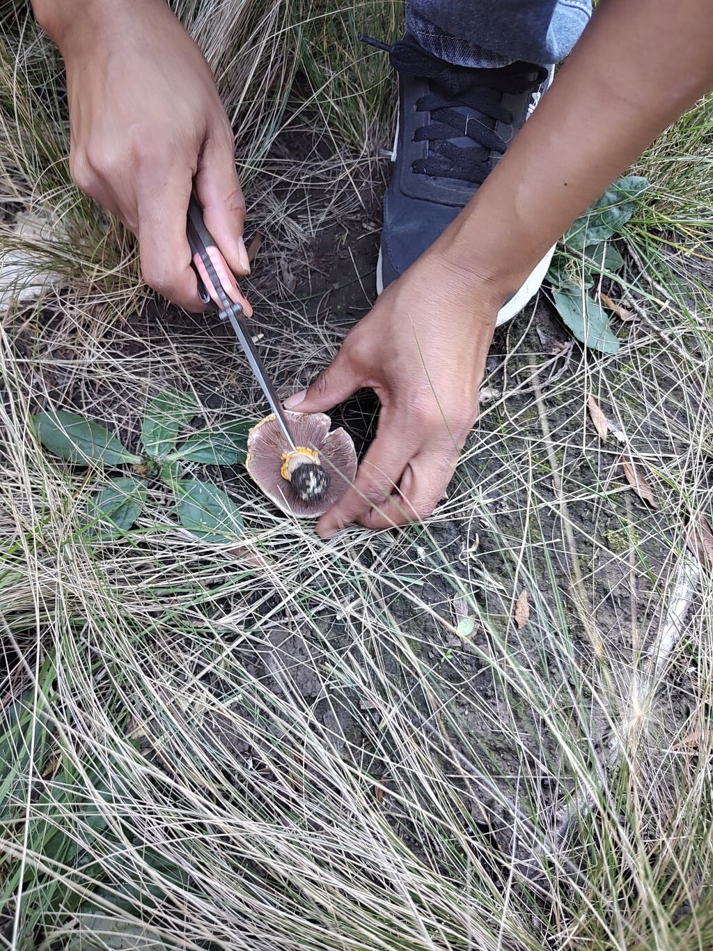 Así comenzó su camino de investigación y su vinculación con la Escuela Agrícola Claromecó, una asociación civil que por entonces desarrollaba un enfoque muy interesante sobre el cultivo de alimentos y el cuidado del entorno natural. Fue a través de esta ONG que Emilia se conectó con Pablo Postemsky, quien desde 2018 llevaba adelante un proyecto de cultivo de hongos comestibles y medicinales en toda la provincia de Buenos Aires, en colaboración con el CONICET. Pablo, director del Laboratorio de Biotecnología de Hongos Comestibles y Medicinales del CONICET CERZOS en Bahía Blanca, se unió con Emilia para iniciar un proyecto productivo de hongos comestibles en la sede de la EAC. Tiempo después surgió la idea de organizar un encuentro de hongos, y fue entonces cuando Emilia descubrió la existencia de los taxónomos, los especialistas dedicados a la identificación de estas especies.