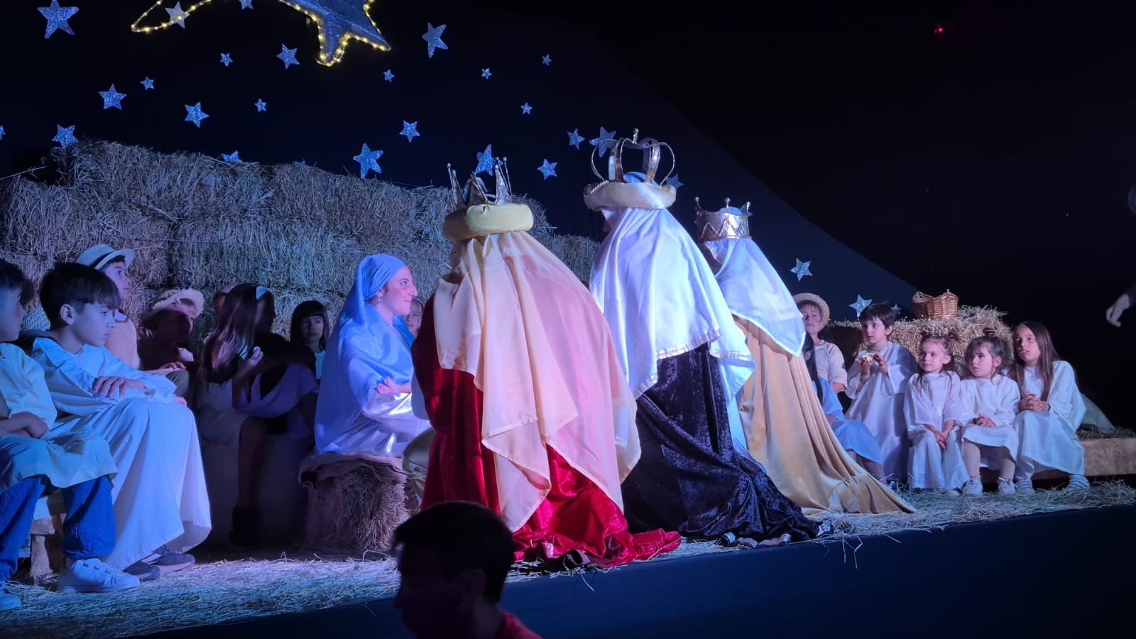 Tras el descenso, los Reyes arribaron a caballo al Centro Cultural, recorriendo una extensa pasarela que los condujo al escenario. Allí, el Pesebre Viviente aguardaba para el momento más solemne de la noche: la adoración al Niño Jesús junto a María, José y los pastorcitos. El silencio de los espectadores se fundió en plegarias antes de dar paso a la entrega interminable de regalos y las fotografías que inmortalizaron el sueño cumplido de cada pequeño.