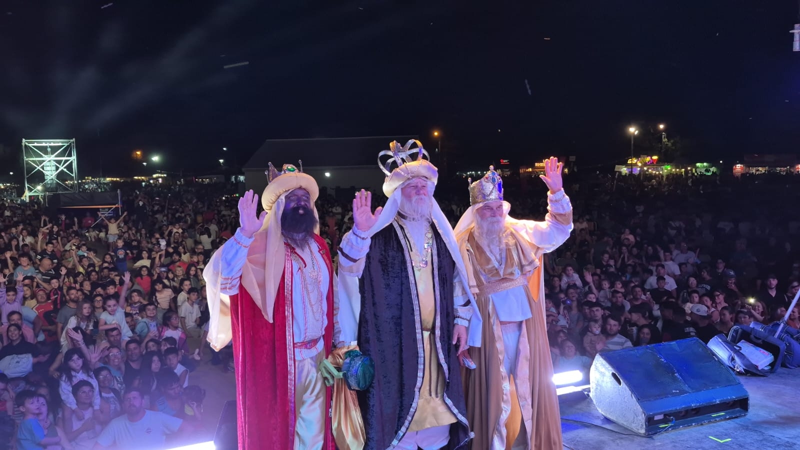 «Fue entonces cuando las bengalas de colores rojo, amarillo y verde rasgaron la negrura, anunciando que Melchor, Gaspar y Baltasar ya estaban allí. En ese instante, los corazones de miles de niños comenzaron a galopar al extremo. Las luces iniciaron su descenso por la ladera, guiadas por los Bomberos Voluntarios, mientras en el predio las luces se apagaban para dejar que el cielo se inundara de fuegos artificiales. Es un momento donde la mirada de un niño lo dice todo: la magia es real.»
