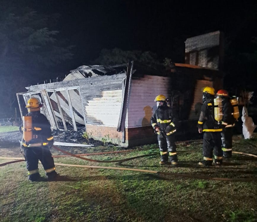 Bomberos voluntarios de la localidad fueron alertados a las 01:18Hs. de este sábado por fuego en un quincho en calle los Cerezos lote N° 15 del B° Golf de la localidad .