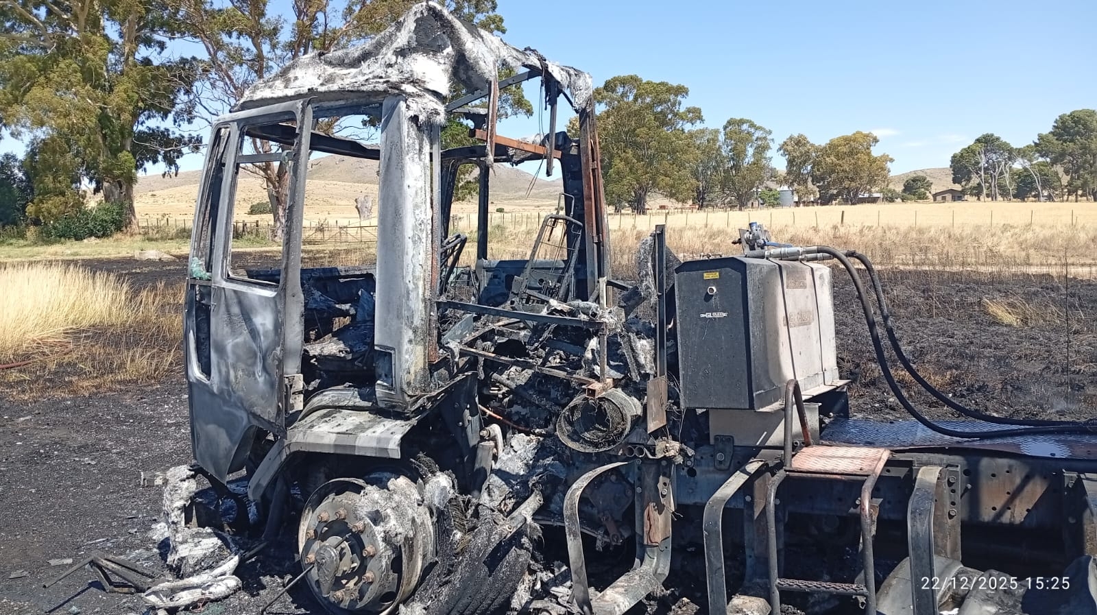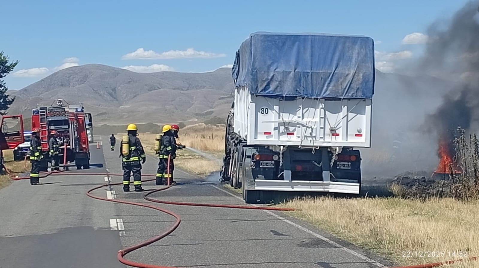 El incidente ocurrió este lunes por la tarde cerca de las 14:30. Pese a la magnitud del fuego, que destruyó la cabina del vehículo, el chofer resultó ileso. Trabajaron en el lugar Bomberos Voluntarios y personal de emergencias.