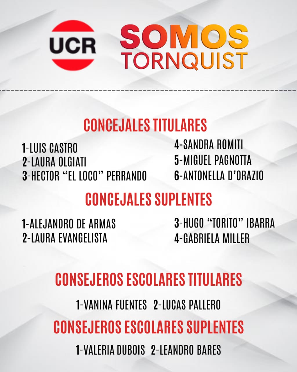 La lista oficial que va a competir el próximo 7 de septiembre en el Distrito de Tornquist.