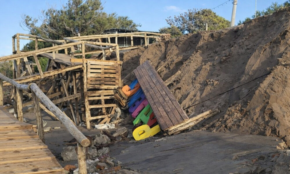 • Zona Céntrica: El agua avanzó sobre el médano frontal, dañando estructuras de guardavidas.