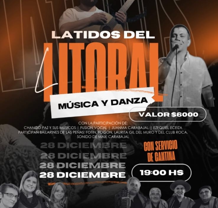 La programación incluye peñas, bailanta y un cierre musical con el show de Ezequiel Eceiza. También se presentarán Chango Paz y sus músicos, Fusión Vocal y Juanma Carabajal, acompañados por los bailarines de las peñas Fotín, Fogón, Laurita Gil del Muro y Club Roca.