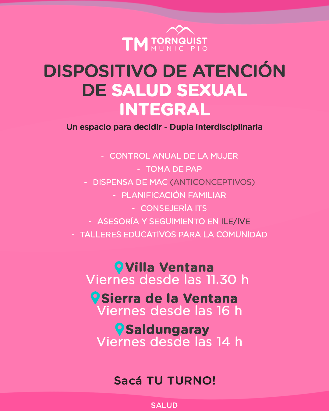 En el marco de la campaña mundial Octubre Rosa, Tornquist Municipio, a través de la Secretaría de Salud y el dispositivo de Salud Sexual Integral, invita a la comunidad a participar de diversas actividades orientadas a la concientización, detección temprana y prevención del cáncer de mama y cuello uterino.