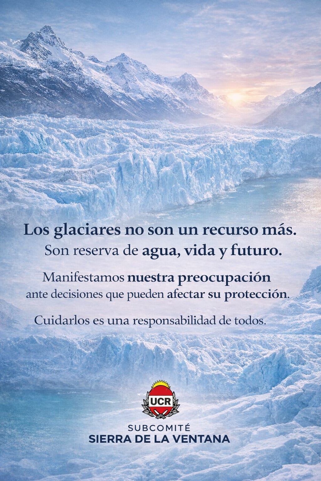 A través de un comunicado, el Subcomité Sierra de la Ventana de la Unión Cívica Radical (UCR) expresó su profunda preocupación ante posibles modificaciones legislativas que podrían significar un retroceso en el cuidado de los glaciares en nuestro país.