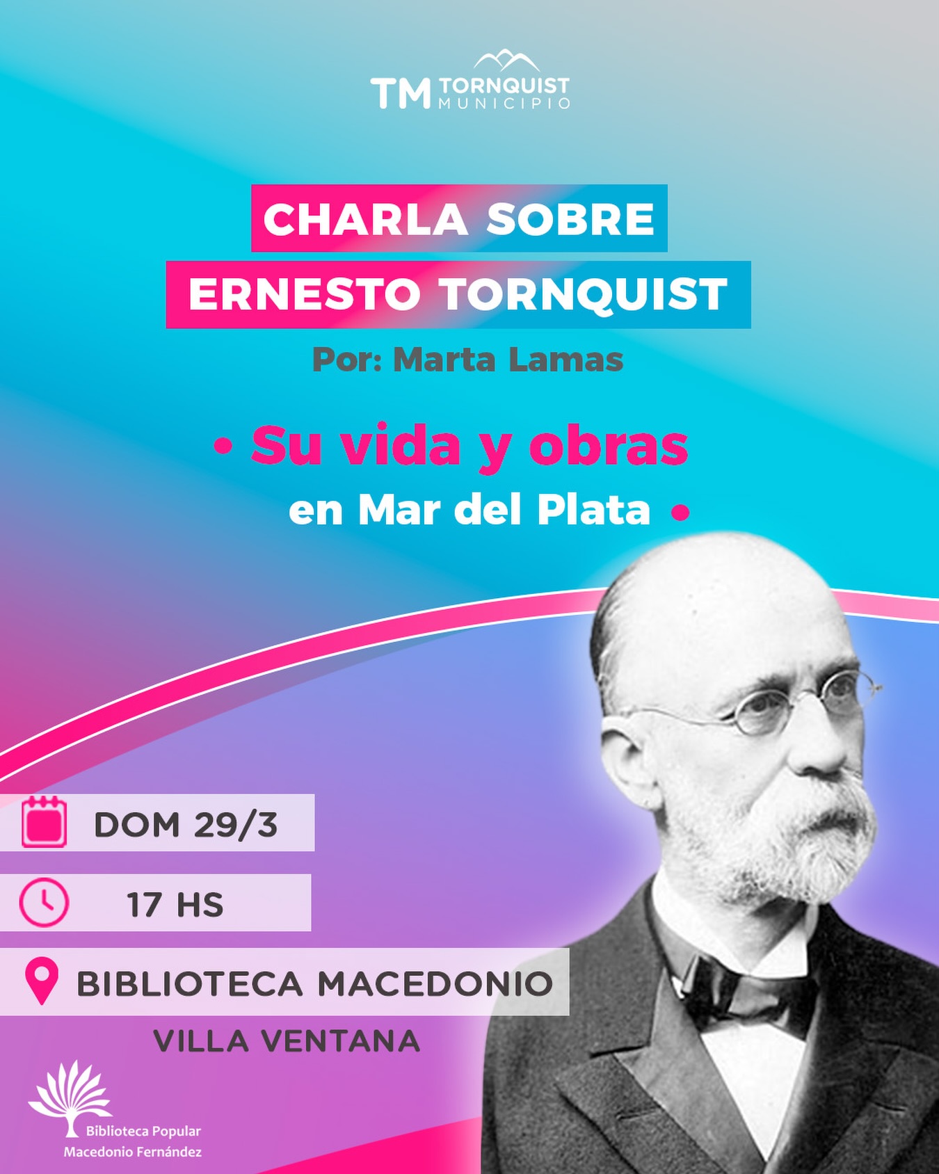 El domingo 29 de marzo a las 17:00 horas, la propuesta será un viaje a través de la historia. La biblioteca presenta la Charla Abierta: «Ernesto Tornquist: su vida y obras en Mar del Plata», a cargo de la reconocida historiadora, bibliotecaria y documentalista Marta Lamas, referente en la preservación de la identidad marplatense. Esta será una oportunidad única para conocer más sobre el legado de Ernesto Tornquist y su impacto en la costa atlántica, de la mano de una investigadora con amplia trayectoria en el ámbito cultural.