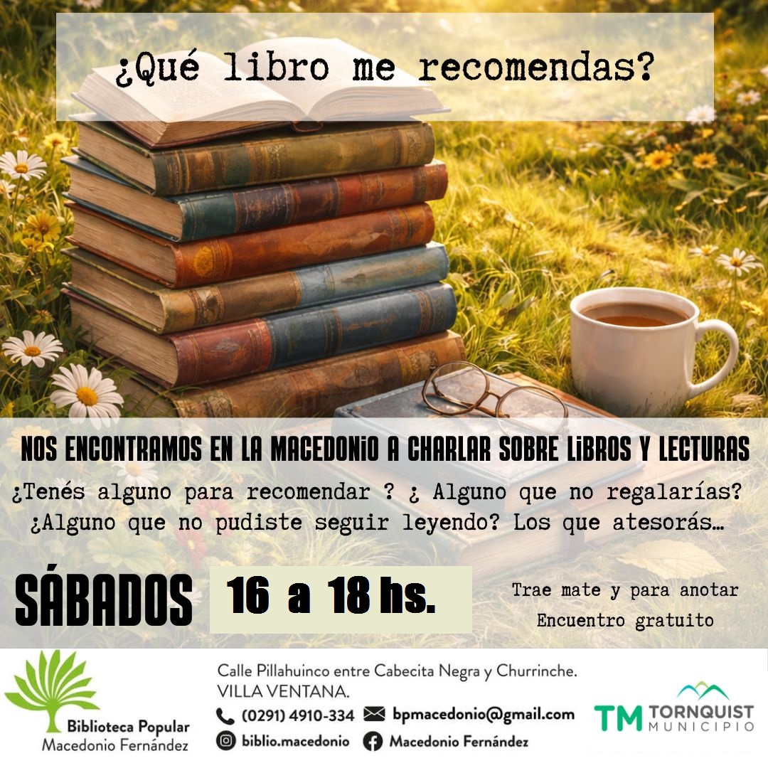 La Biblioteca Popular Macedonio Fernández invita a la comunidad a disfrutar de una agenda cargada de propuestas gratuitas y abiertas a todo público para este sábado y domingo. Las actividades, que cuentan con el respaldo del Municipio de Tornquist, incluyen una peña folclórica con «shows» en vivo, una charla histórica sobre el legado de Ernesto Tornquist en Mar del Plata a cargo de Marta Lamas y el clásico encuentro de debate literario «¿Qué libro me recomendás?».