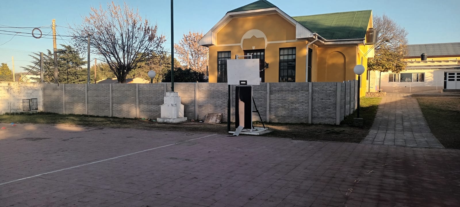 «Esta no es la primera vez. Es un espacio que utilizamos un montón, que compartimos con el CEF 9 y donde se dan las clases de Educación Física de la Escuela 6. Ayer tempranito me encuentro conque rompen el tapizado de uno de los aros de basquet y el otro aro lo habían bajado» comenta Pablo con lo que se encontró durante el primer turno de esta mañana.