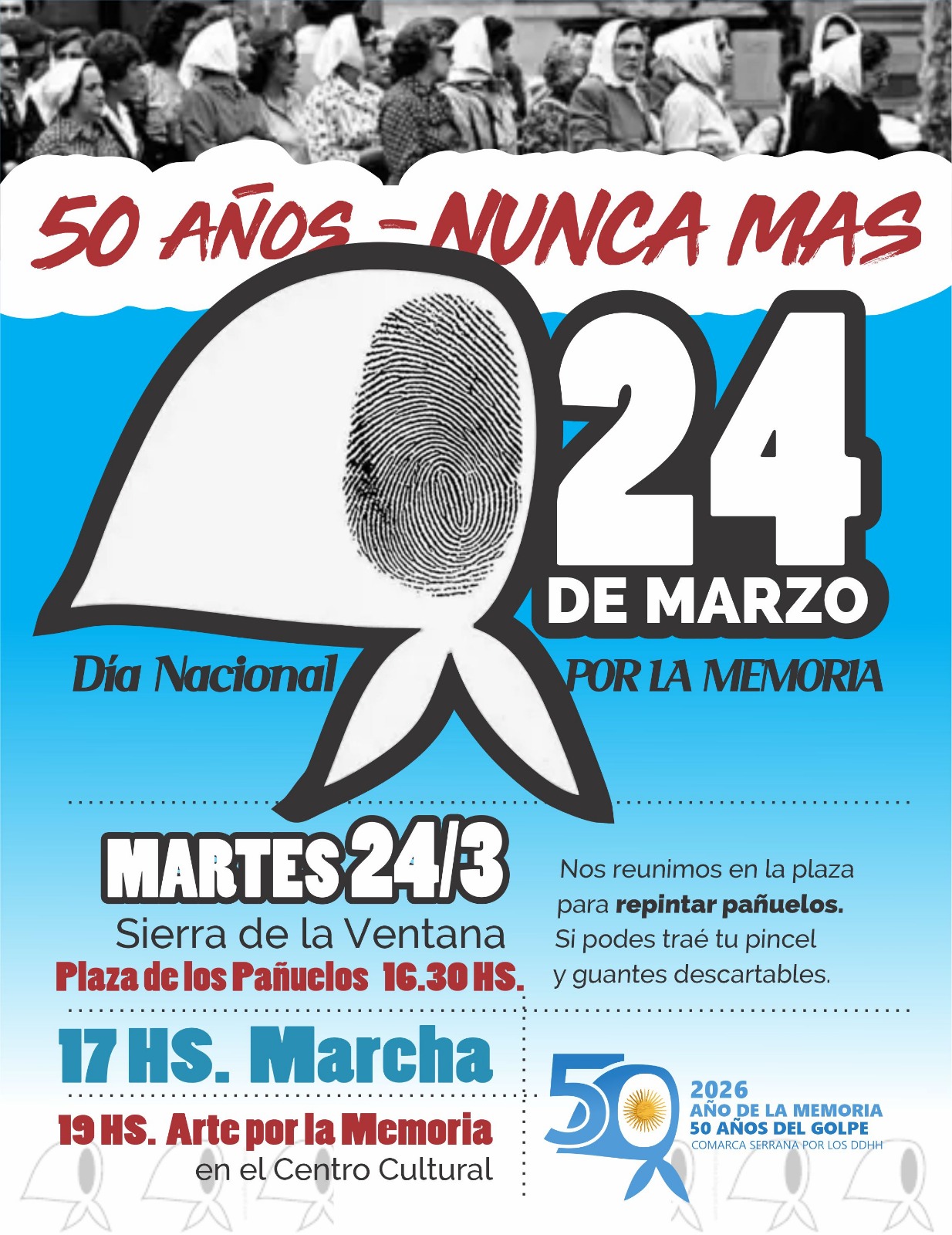Invitamos a toda la ciudadanía a sumarse a las actividades del día 24 de marzo y comprometerse con el pacto democrático resumido en la expresión NUNCA MAS.